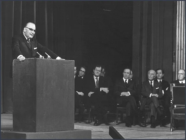 Pour Georges Pompidou, agrégé de lettres classiques, professeur entré à la Libération au cabinet du général de Gaulle et qui poursuit ensuite une carrière de haut fonctionnaire puis de banquier, il s’agit de garder une activité d’enseignant ainsi qu’une sociabilité administrative et politique dans un milieu qui n’est pas hostile au général. Dans les années 1950, il est maître de conférence en histoire en année préparatoire, jusqu’au retour au pouvoir du général de Gaulle. Président de la République, il reviendra en 1971 célébrer le centenaire de l’École.