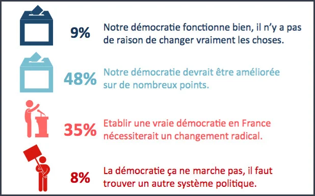 Dans l'enquête électorale française de Décembre 2017, le CEVIPOF s'est notamment intéressé aux relations entre démocratie et citoyenneté. Emile a sélectionné deux de leurs résultats.