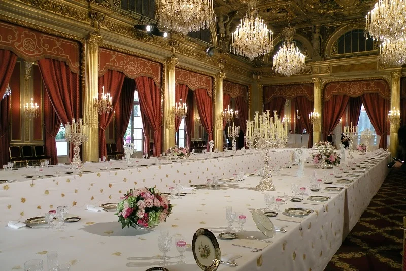 De même pour la fameuse garden-party du 14 juillet, elle aussi inaugurée à la fin du XIXe siècle, et qui suit le défilé militaire dans les jardins de l’Élysée, souvent prétexte à une interview du chef de l’État, devenue elle aussi rituelle depuis Giscard. De même enfin pour les nombreux banquets et réceptions qui jalonnent l’année présidentielle, permettant à l’hôte de l’Élysée de faire les honneurs du bon goût français à ses invités. C’est ainsi, par exemple, que le général de Gaulle reçut en dix ans les représentants de 63 pays, parmi lesquels le président américain JFK, dont l’épouse Jackie, née Bouvier, en mai 1961, ne laissa pas indifférent le grand Charles.