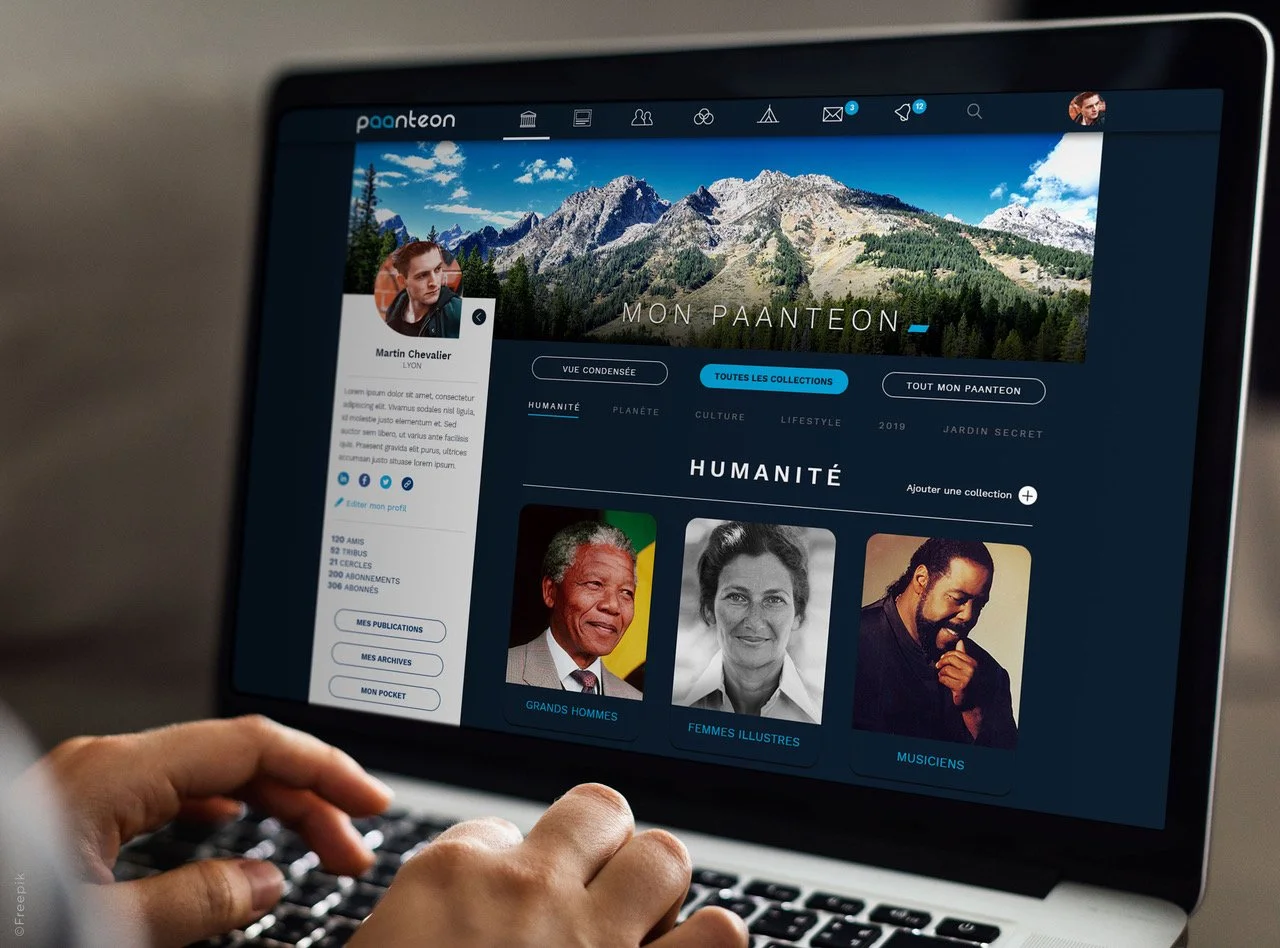 Au Panthéon évidemment, ce temple de « tous les dieux » que Grecs et Romains consacraient à leurs divinités. Cette institution universelle a perduré depuis l’Antiquité en se laïcisant. Paanteon s’appuie sur ce concept et propose à chacun un espace pour y créer son panthéon personnel, comme une sorte de « musée intérieur ». Au-delà des personnes, nous l’élargissons aux beautés de la nature et du monde qui nous émerveillent, aux œuvres culturelles et artistiques qui nous émeuvent. Il devient votre univers d’inspirations positives. L’aspect réseau social permet de partager autour des mêmes affinités, d’inspirer les autres et de se laisser inspirer par eux !