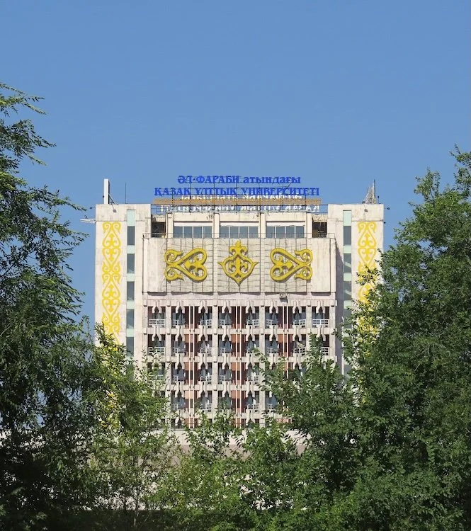 Al-Farabi est la plus grande université du pays. Sa grande tour esr parée d’ornements traditionnels kazakhs, (Crédits : Alexandru Panolu / Wikimedia Commons)