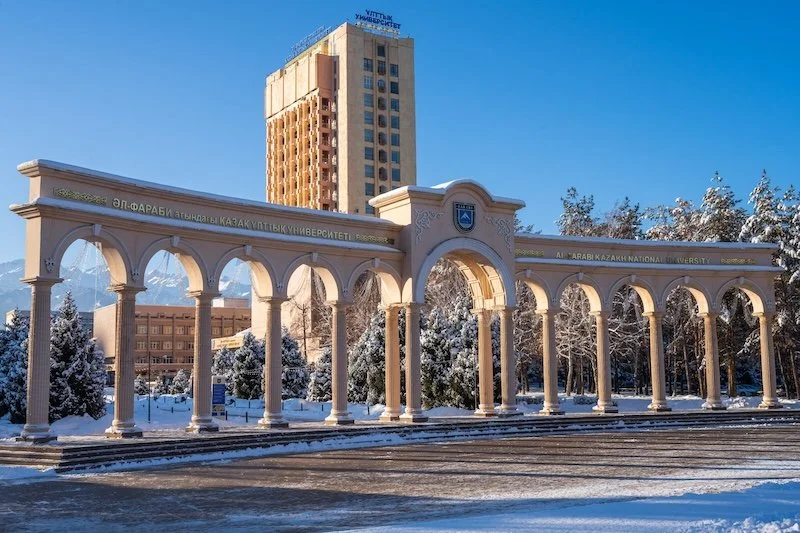 Sur les hauteurs d’Almaty, la grande tour de l’Université Al-Farabi, parée d’ornements traditionnels kazakhs, accueille environ 7 000 étudiants étrangers. « Chaque année, leur nombre augmente de 8 à 10 % », précise le recteur Zhanseit Tuimebayev.